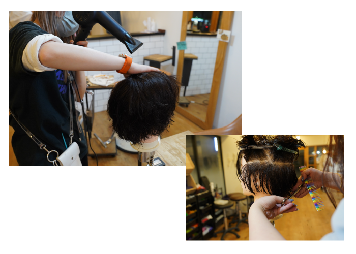 研修では営業時間を使って終日、毛髪理論、技術、接客スキルを磨いていきます。