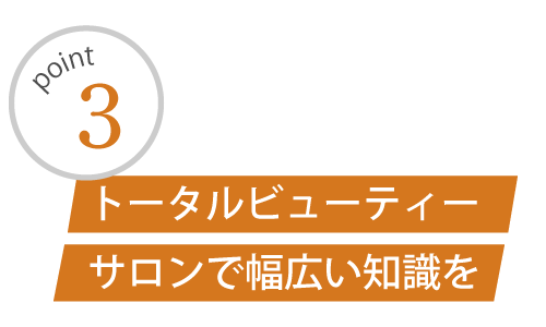 ヘア・ネイル・アイのトータルビューティーサロンです。お客様の満足度が高いことはもちろん、スタッフ満足度が高いこともトータルビューティーサロンの強みです。ネイルとヘアの同時施術や、アイとヘアの同日施術が可能◎ほかに着付けやメイクなども学べます。
