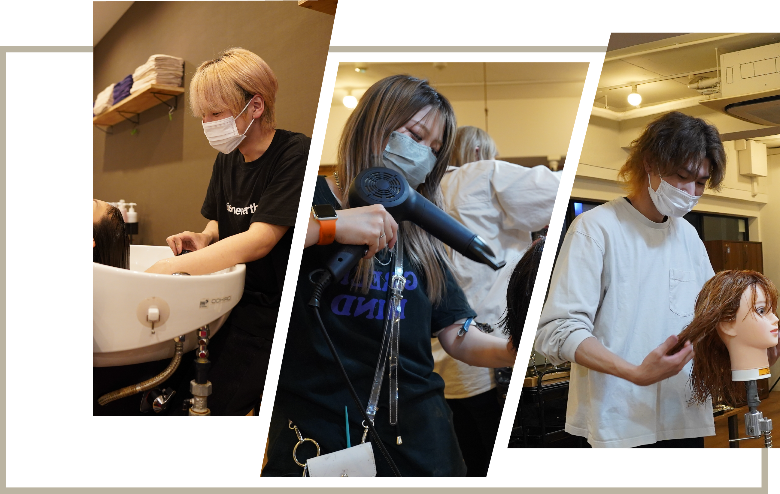 新入社員でも1ヶ月後にはシャンプーだけでなく、カラー塗布やブローなどスキルを持ってお客様を入客します。